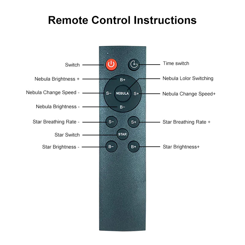 You can use the remote control to adjust the pattern, brightness and rotation speed to customize the projection effect you like. Star or nebula patterns can be used simultaneously or separately. Besides, you can set the timer to 45 or 90 minutes.